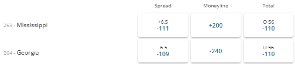 As you can see Georgia is a 6.5 point favorite. The over/under for the game is set at 56 points.