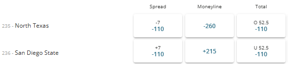 The North Texas Mean Green are 7 point favorites heading into the game. The total is set at 52.5 points.